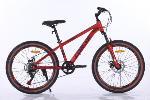 Материал рамы алюминий Тип тормозов дисковый механический Диаметр колес 24 Размер рамы 13,5" Вилка # амортизационная с регулировкой ход 60 мм пружинная Количество скоростей # 7 Передний переключатель # - Задний переключатель # Sunrun аналог TZ 500 Передний тормоз # дисковый mech. disc 160 механический Задний тормоз # дисковый mech. disc 160 механический Манетки # Sunrun аналог ST-EF 500 рычажковый Шатуны # HDL 1ск. 32 T Каретка # картридж Задние звезды # ATA 7sp 14-28T Втулки # steel на промах Покрышки # 24"*2.125 с коричневой полосой Обода # алюминий двойной LORAK Цепь # KMC C030 Руль # Lorak 580W*2.2T Вынос # резьбовой Подседельный штырь # Zoom 27.2*300MM Рулевая колонка # резьбовая Седло # Lorak Junior Педали # пластик Вес # 14,5 кг