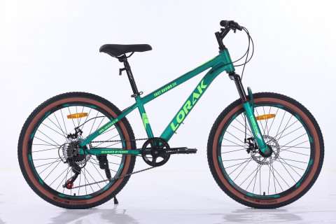 Цвет Матовый Зелёный Материал рамы алюминий Тип тормозов дисковый механический Диаметр колес 24 Размер рамы 13,5" Вилка # амортизационная с регулировкой ход 60 мм пружинная Количество скоростей # 7 Передний переключатель # - Задний переключатель # Sunrun аналог TZ 500 Передний тормоз # дисковый mech. disc 160 механический Задний тормоз # дисковый mech. disc 160 механический Манетки # Sunrun аналог ST-EF 500 рычажковый Шатуны # HDL 1ск. 32 T Каретка # картридж Задние звезды # ATA 7sp 14-28T Втулки # steel на промах Покрышки # 24"*2.125 с коричневой полосой Обода # алюминий двойной LORAK Цепь # KMC C030 Руль # Lorak 580W*2.2T Вынос # резьбовой Подседельный штырь # Zoom 27.2*300MM Рулевая колонка # резьбовая Седло # Lorak Junior Педали # пластик Вес # 14,5 кг
